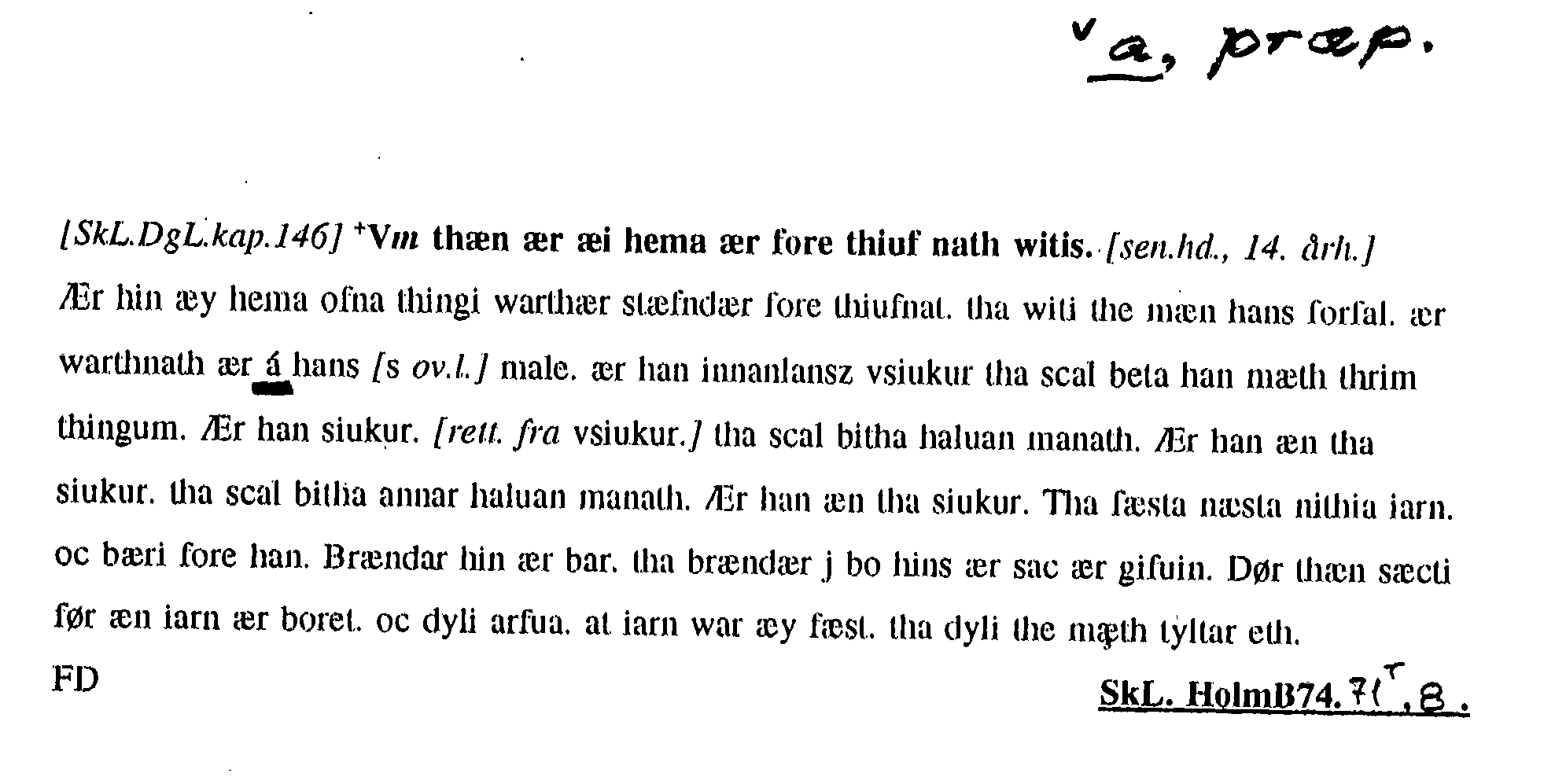 Ær hin æy hema ofna thingi warlhær stæfndær fore thitifirat. tha witi the aren hans forfal. ær
