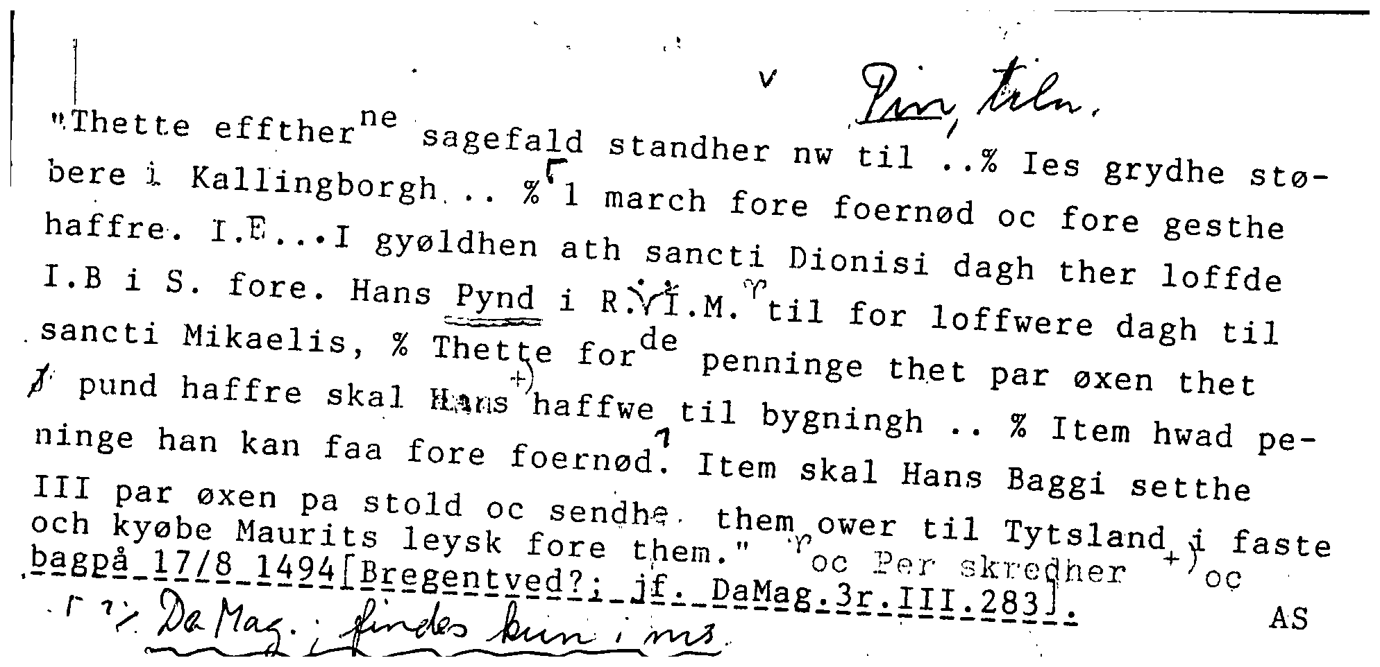 och kyøbe Maurits leysk fore them." '^oc .Per skredher +/oc